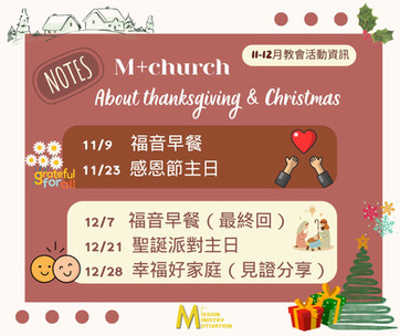 3. 為教會禱告(為教會感恩、聖誕節活動禱告) 主啊,感謝祢領我們走過恩典的一年。願教會充滿感恩的聲音與見證。 求祢大大使用聖誕活動,使每一次分享、每一次邀請都成為福音的出口,讓人遇見耶穌、得著救恩!