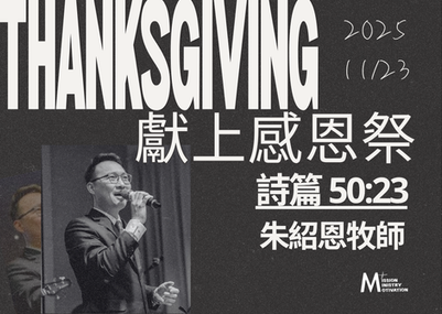 敬拜 READY GO敬拜團 禱告 READY GO敬拜團 讀經 詩篇50:23 劉景峰弟兄 信息 獻上感恩祭 朱紹恩牧師 回應奉獻 劉景峰弟兄 報告 劉景峰弟兄 頌榮 三一頌 會 眾 祝福 阿門頌 朱紹恩牧師 |