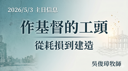 主日服事 司會 | 柴瑞林弟兄 敬拜 | READY go敬拜團 鋼琴|敬拜團 鼓手|敬拜團 講道|寇紹恩牧師 招待|陳春美姊妹 | 詹惠怡姊妹 音控|戴世華弟兄 投影|高家瑞弟兄 插花|謝媽媽 | 下週主日服事 司會|劉祥斌弟兄 敬拜 | 石湘怡姊妹 鋼琴|敬拜團 鼓手|敬拜團 講道 | 吳俊璋牧師 招待|曾明輝弟兄 | 姚惠兒姊妹 音控|陳麒升弟兄 投影 | 李振瑋弟兄 插花|謝媽媽 |
