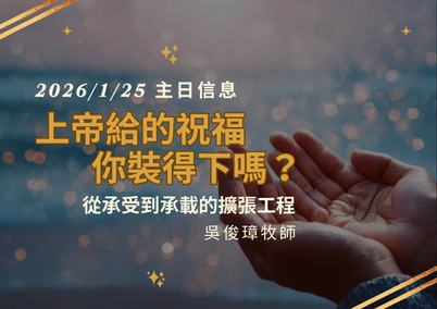 敬拜 READY GO敬拜團 禱告 吳俊璋牧師 報告 柴瑞林弟兄 信息 上帝給的祝福你裝得下嗎 吳俊璋牧師 頌榮 三一頌 會 眾 祝福 阿門頌 吳俊璋牧師 |